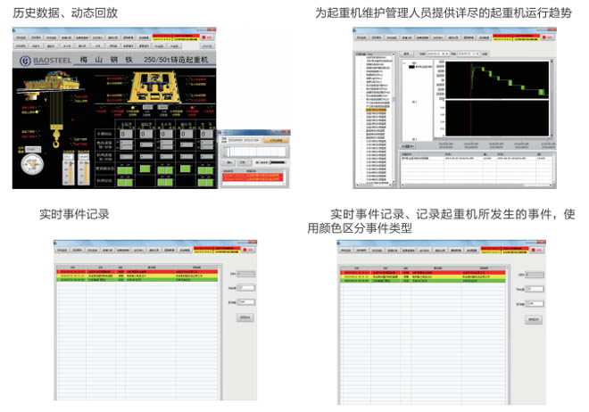 •- 通過起重機(jī)安全監(jiān)控管理系統(tǒng),運(yùn)行管理人員可以通過系統(tǒng)對(duì)起重機(jī)運(yùn)行中出現(xiàn)的故障進(jìn)行 查詢和處理;對(duì)設(shè)備及元器件進(jìn)行系統(tǒng)管理;指導(dǎo)定期對(duì)系統(tǒng)進(jìn)行維修和調(diào)試。系統(tǒng)具備以 下功能:實(shí)時(shí)狀態(tài)顯示、實(shí)時(shí)報(bào)警顯示、歷史記錄查詢、部件壽命監(jiān)測(cè)、事故診斷分析、數(shù) 據(jù)統(tǒng)計(jì)及權(quán)限設(shè)定管理等。