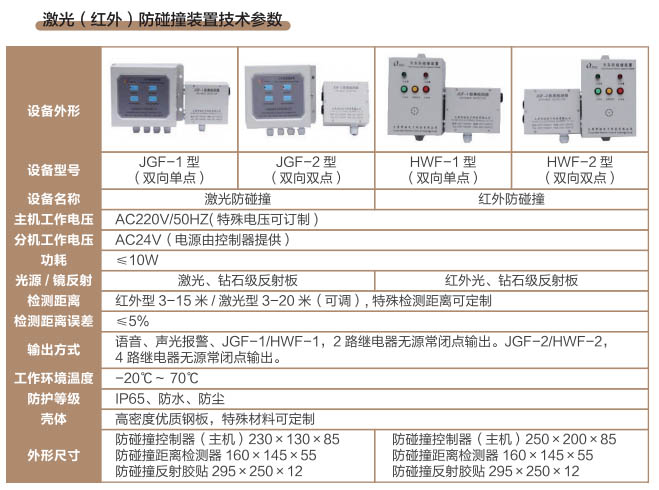 激光(紅外)防碰撞裝置技術(shù)參數(shù) 瀏覽:1376
